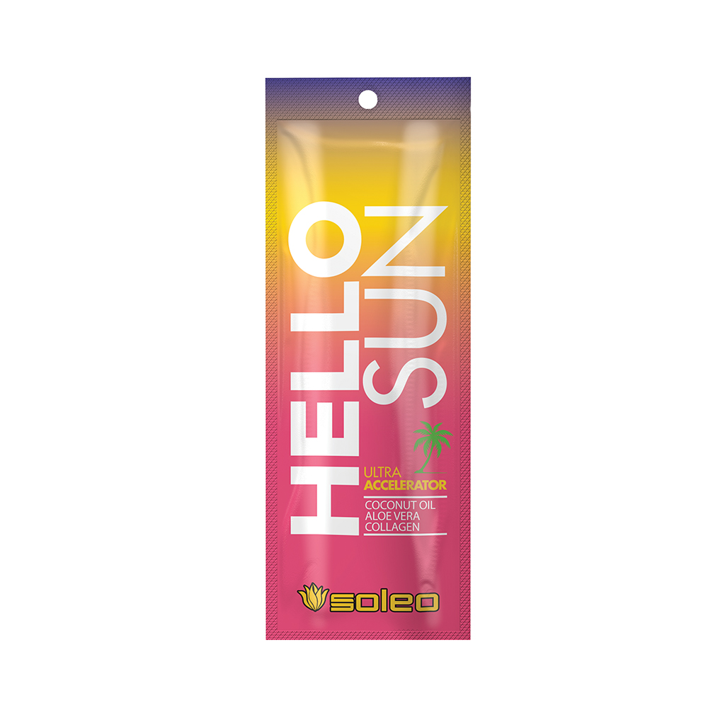 Ультра ускоритель загара в солярии Soleo Hello Sun с маслом какао увлажняет и тонизирует кожу, обеспечивает быстрый и ровный загар. Предотвращает проявление воспалительных процессов кожи и защищает от фотостарения.