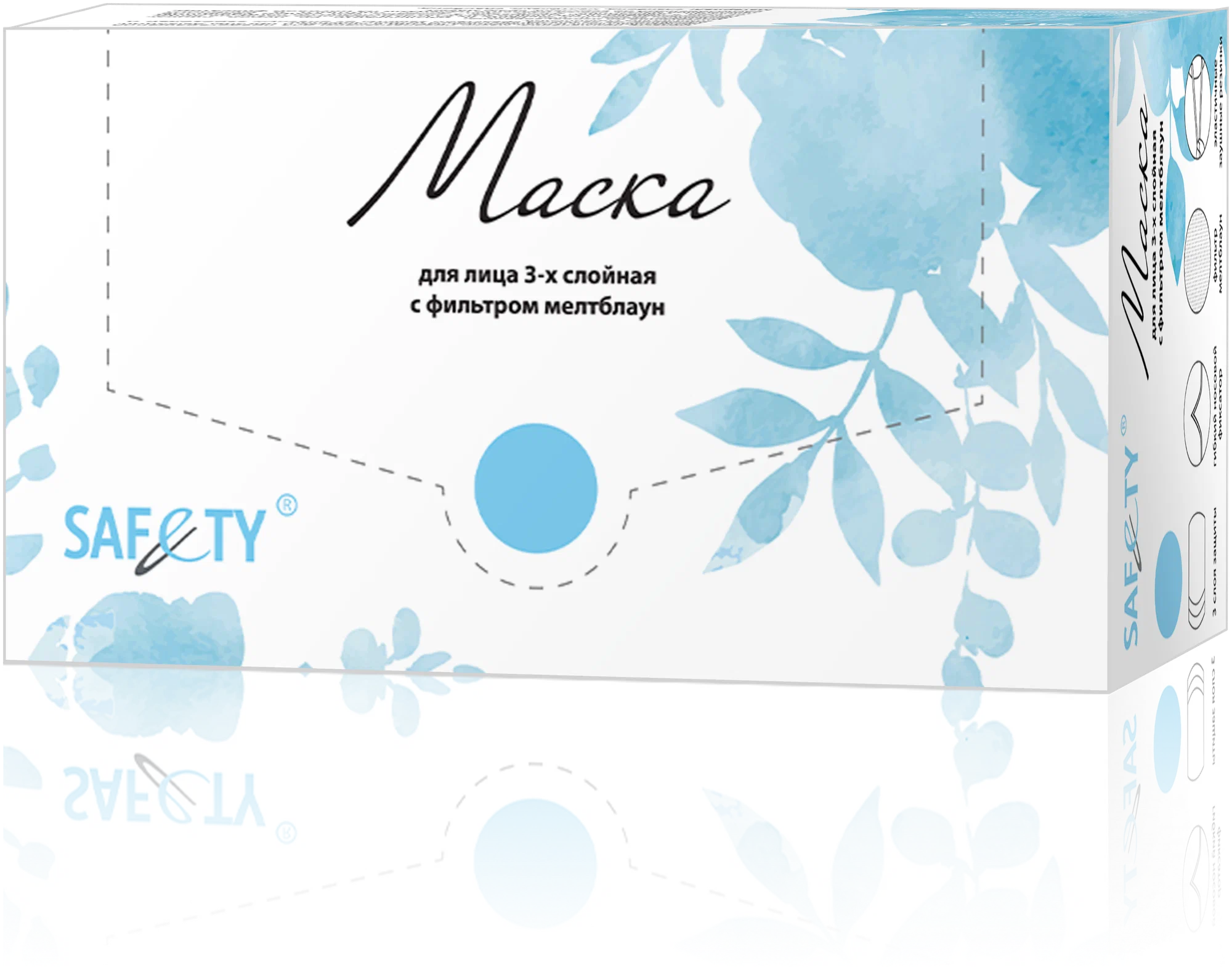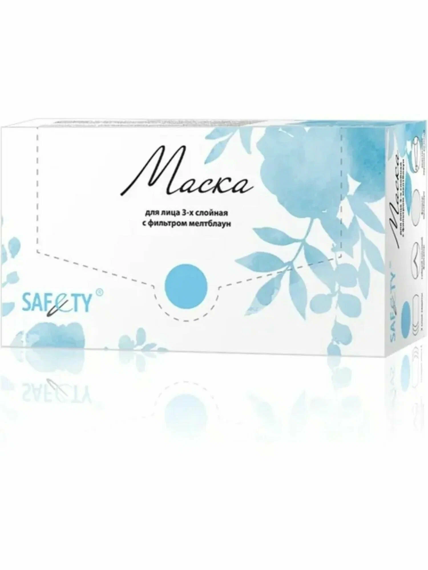 Маска SAF&TY Premium 3-х слойная, мелтблаун, голубая