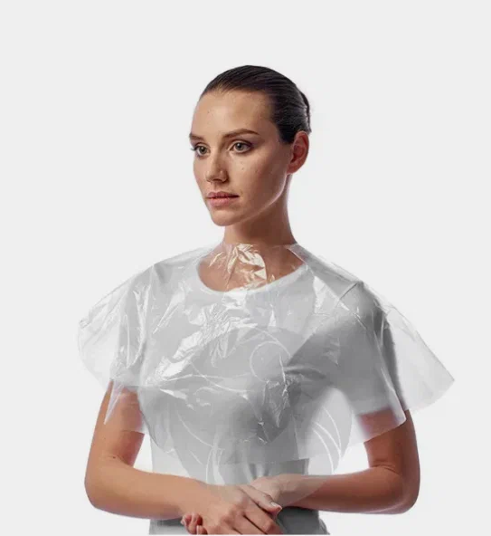 Прочные и влагостойкие накидки защищают одежду клиентов от косметических средств. Используются при создании макияжа и прически, окрашивании бровей и ресниц, во время косметологических и других бьюти-процедур. Толщина - 15 мкм.