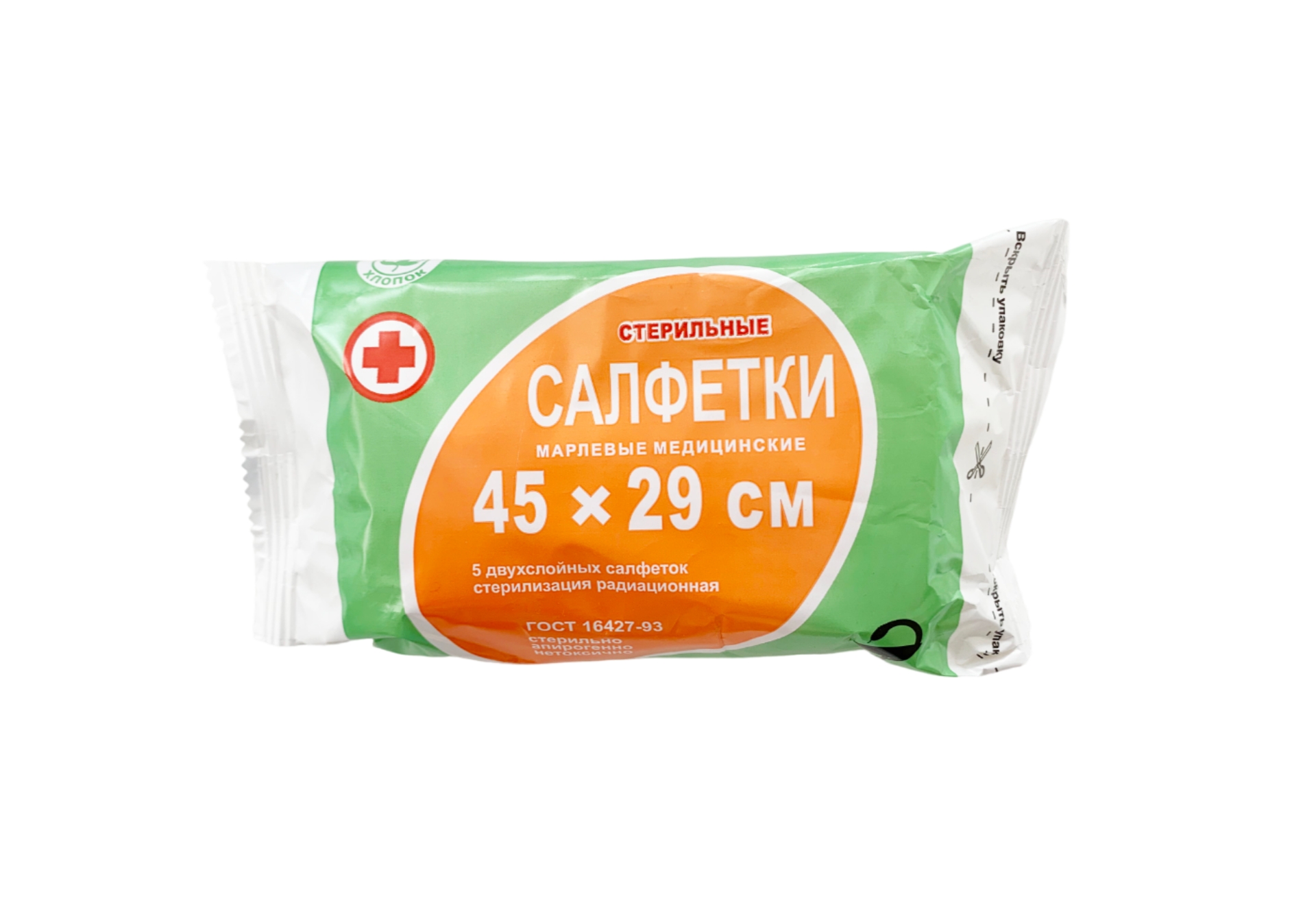Салфетки марлевые медицинские стерильные — применяются для использования в качестве готовых операционно-перевязочных средств, для наложения повязок, осушения ран, при перевязках и операциях, для тампонады с целью остановки кровотечения и дренирования, закрепления перевязочного материала, давления на какую-нибудь часть тела (в основном, для остановки кровотечения), предупреждения отека тканей или удержания конечности либо иной части тела в неподвижном состоянии, а также для защиты раны или измененной поверхности кожи от воздействия внешней среды — фиксируются бинтом или медицинским пластырем.