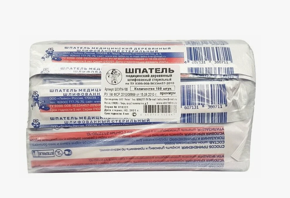 Медицинский шпатель представляет собой стерильное приспособление 150х18х1,8мм, предназначенное для безопасного взятия соскоба со слизистой оболочки рта.
