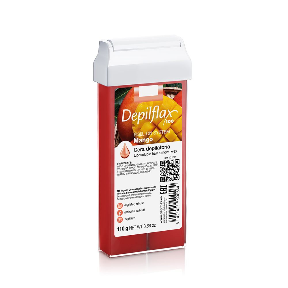 Прозрачный "фруктовый" воск с радужными пигментами от бренда Depilflax100 - Манго в картридже. Подходит для средних и коротких волос и любых типов кожи. Особенно рекомендован для чувствительной кожи. Содержит радужные пигменты, антиоксиданты и витамин А. Универсальная прозрачная формула воска (из сосновых смол без красителей) активно питает и увлажняет кожу. Обладает приятным оттенком и ароматом.