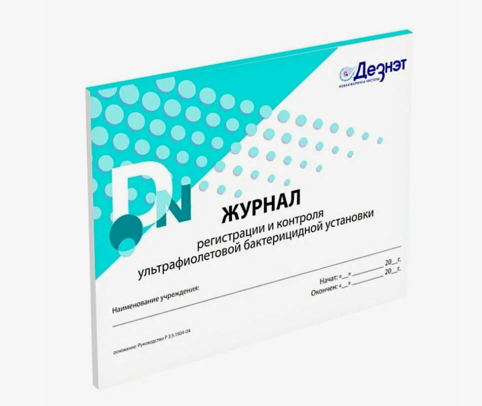 Журнал регистрации и контроля работы бактерицидной установки "Дезнэт" (24 листа)